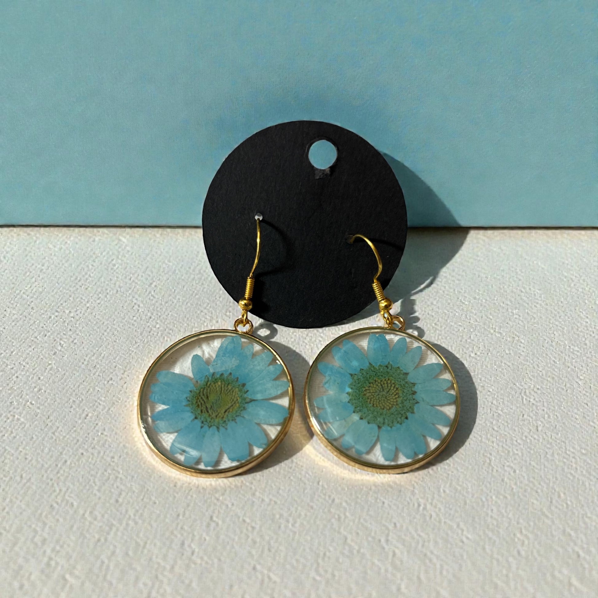 These beautiful earrings are made with a pressed red daisy flower that was pressed and encased in uv resin.